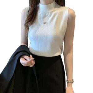 HSR Women Stylish Sleeveless High Mock Neck Stretchable Knit Regular Fit Tank Top (Free Size)