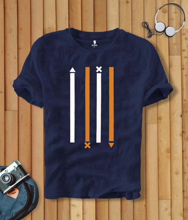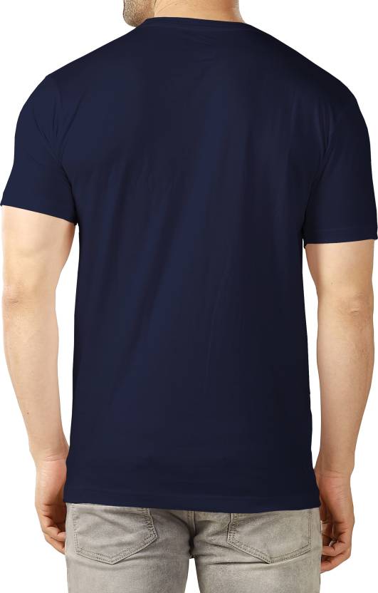 BLIVE Printed Men Round Neck Navy Blue T-Shirt