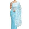 Ada Hand Embroidered Lucknowi Chikankari Women’s Blue Georgette Saree with Blouse Piece A129562