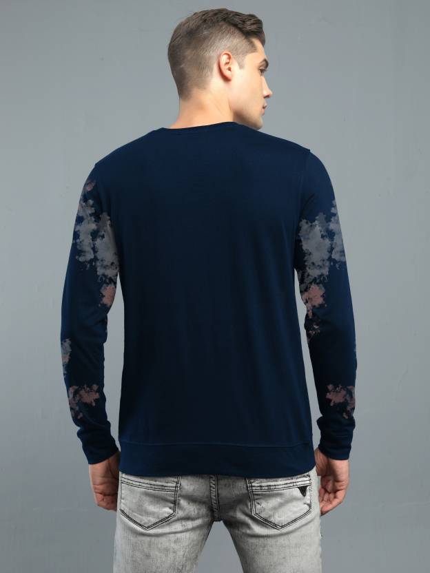 Product Details Type Round Neck Sleeve Full Sleeve Fit Slim Fabric Pure Cotton Sales Package 1 Mens Cotton Tshirt Pack of 1 Style Code JC21-RN-FS-NAVY-GREY-SPRAY-AOP Neck Type Round Neck Ideal For Men Size S Pattern Printed Suitable For Western Wear Reversible No Fabric Care Gentle Machine Wash Give your casual outfit an uber-cool update with this cotton Tshirt from Jump cuts, to head out for a soiree in style. Minimally fashionable and super rich in comfort, this 100% cotton Tshirt can be worn perfectly with beige chinos and a pair of sneakers
