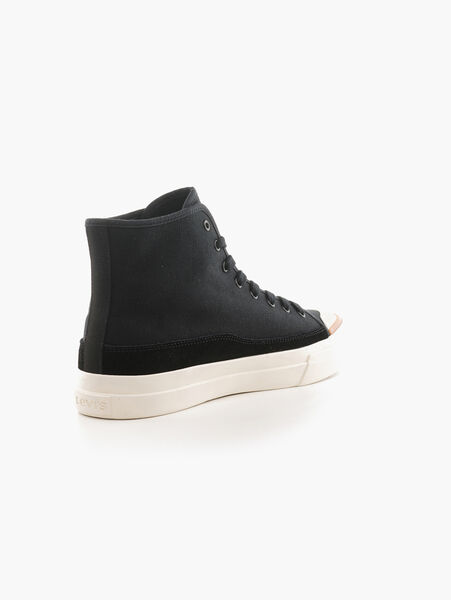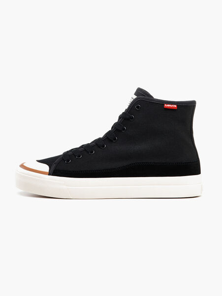 Trendy and versatile, the Levis® Mens Square High Sneakers is an ideal pick for your weekend outings. Designed with a cottonupper material, these sneakers are a great blend of comfort and durability.Whether youre wearing jeans or shorts, these black sneakers go with everything!