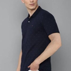 LOUIS PHILIPPE Solid Men Polo Neck Navy Blue T-Shirt