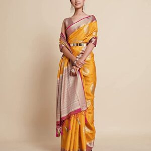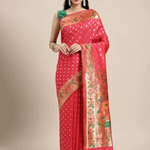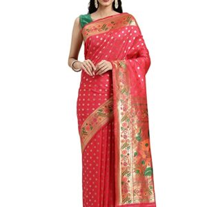 Manohari Women’s Heavy Banarasi Silk Woven Pattern Modern Jacquard Work Most Trendy and Famous 5.5 Meter Saree with 0.8 Meter fully Jacquard Trendy Work Blouse Peice.