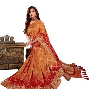 About this Item 𝐒𝐚𝐫𝐞𝐞 𝐅𝐚𝐛𝐫𝐢𝐜: Jequard , 𝐁𝐥𝐨𝐮𝐬𝐞 𝐅𝐚𝐛𝐫𝐢𝐜: Poly Silk 𝐒𝐚𝐫𝐞𝐞 𝐂𝐨𝐥𝐨𝐫: Yellow&Red , 𝐁𝐥𝐨𝐮𝐬𝐞 𝐂𝐨𝐥𝐨𝐫: Red 𝐒𝐚𝐫𝐞𝐞 𝐋𝐞𝐧𝐠𝐭𝐡: 5.5 Meter , 𝐁𝐥𝐨𝐮𝐬𝐞 𝐋𝐞𝐧𝐠𝐭𝐡: 0.8 Meter 𝐒𝐚𝐫𝐞𝐞 𝐖𝐨𝐫𝐤: Woven , 𝐁𝐥𝐨𝐮𝐬𝐞 𝐖𝐨𝐫𝐤: Printed Saree comes with unstitched blouse piece,which is attached with end of the saree only. Buyer have to cut blouse part from the saree. Stiching service will not be available. There might be color variation due to screen resolution and digital photography Additional Information Item Weight500 g Item Dimensions LxWxH15 x 12 x 3 Centimeters Included ComponentsWith Un-stitched Blouse