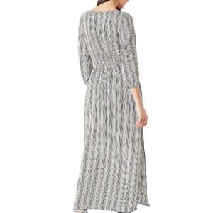 Miss Chase Women’s Multicolored Round Neck 3/4th Sleeves Tie-Up Tassel Detailing Side and Front Slit Maxi Top
