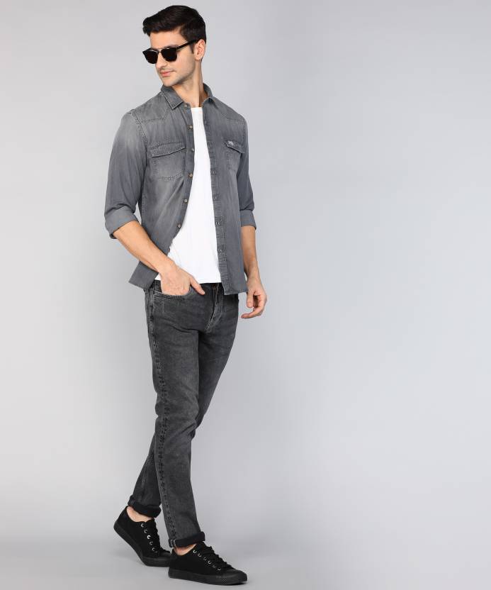 Product Details Style Code UDJENO0546 Ideal For Men Suitable For Western Wear Pack Of 1 Pocket Type Curved Pocket Pattern Solid Reversible No Fabric Pure Cotton Faded Light Fade Rise Mid Rise Distressed Clean Look Color Grey Fabric Care Regular machine wash
