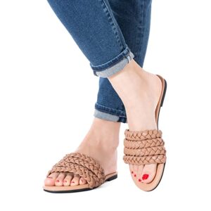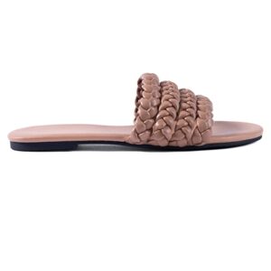 Women Flat Sandals Braided Leather Crossover Nude Dressy Fashion Evening Party Wedding Sandals, B54 Nude, 8